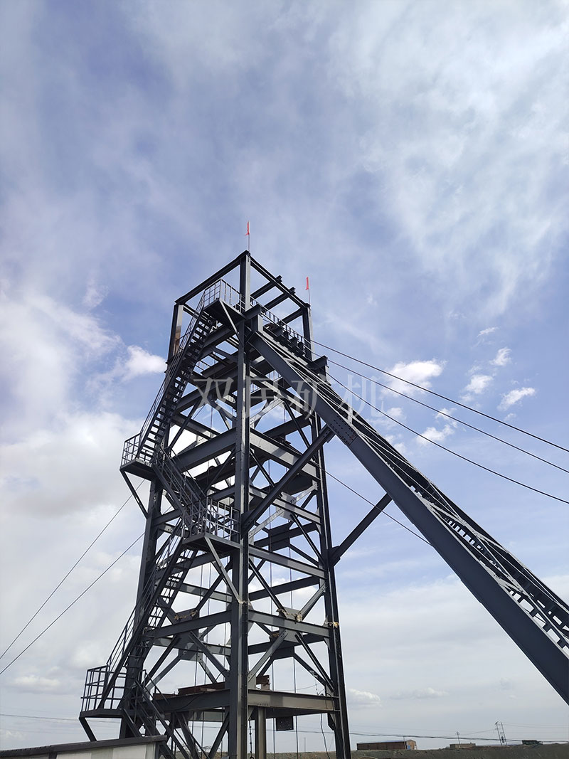 斜撐式永久井架主要特征和優(yōu)點(diǎn): 單斜撐式井架是隨著落地式多繩地上計(jì)技術(shù)發(fā)展而產(chǎn)生的,具有造型獨(dú)特,結(jié)構(gòu)簡(jiǎn)單,受力合理,工程量少,經(jīng)濟(jì)實(shí)用,技術(shù)進(jìn)步的特點(diǎn)。