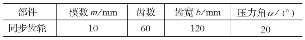 表1 同步齒輪結構參數(shù)
