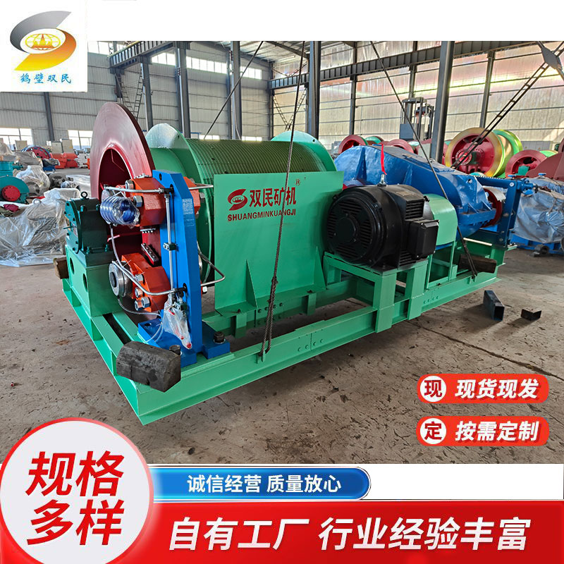 它主要用于礦井中升降人員、提升煤炭、矸石、物料等。其工作原理通常是通過電動機帶動卷筒旋轉,卷筒上纏繞的鋼絲繩實現(xiàn)重物的升降。