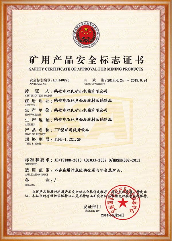 礦用產(chǎn)品安全標(biāo)志證書(shū)